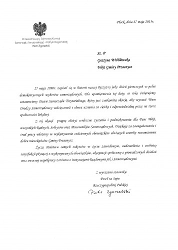 Pod koniec maja tradycyjnie w naszym kraju obchodzi się Dzień Samorządu Terytorialnego. Jest to związane z rocznicą uchwalenia ustawy powołującej do istnienia samorządy w kształcie zbliżonym do dzisiejszego. Z tej okazji do samorządowców i mieszkańców gminy Przasnysz życzenia wystosował poseł Piotr Zgorzelski, przewodniczący sejmowej Komisji Samorządu Terytorialnego i Polityki Regionalnej.