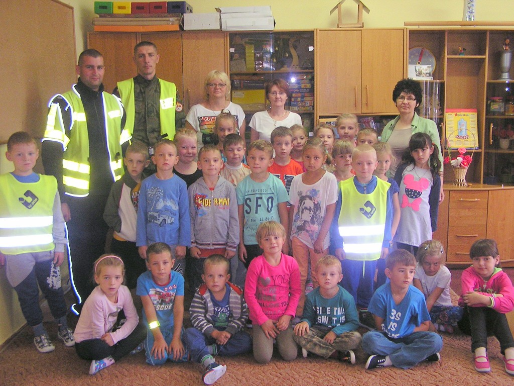 Policjanci przypomnieli dzieciom zasady dotyczące bezpiecznego poruszania się po drogach, zasady bezpieczeństwa w życiu codziennym oraz w autobusie szkolnym. Przeprowadzili także praktyczne ćwiczenie prawidłowego przechodzenia przez jezdnię, omówili bezpieczną jazdę na rowerze oraz zapoznali ze znakami drogowymi.