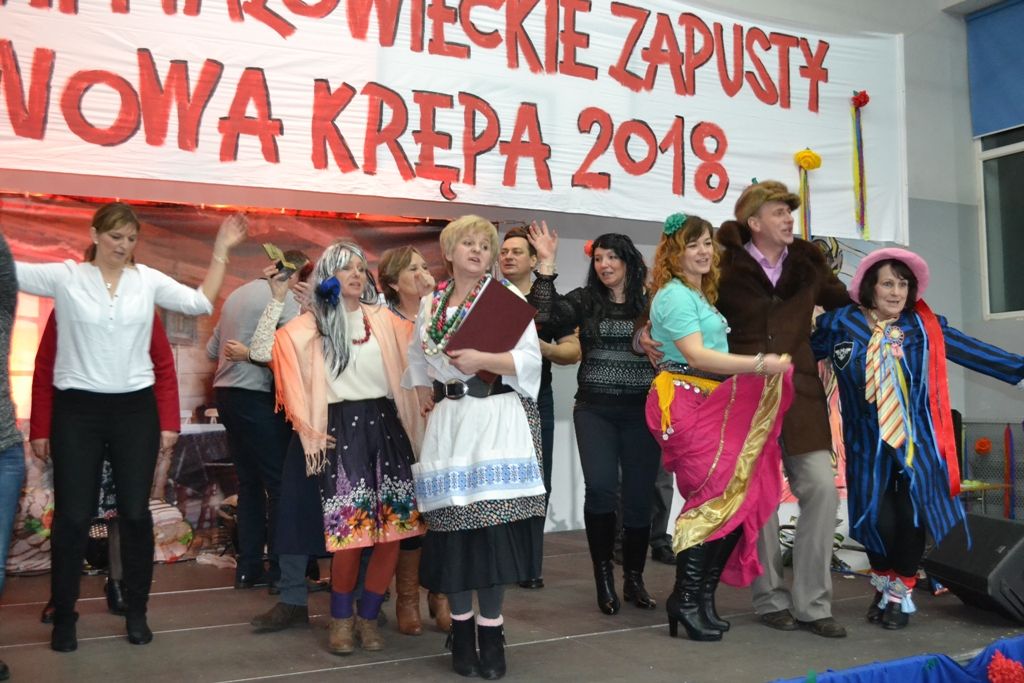 Niedzielne przedpołudnie, 11 lutego, było w Nowej Krępie wyjątkowo głośne. Tego właśnie dnia do tej miejscowości zjechały setki uczestników i zaproszonych gości. Wszyscy mieli wspólnie przeżywać Mazowieckie Zapusty. Tym razem do udziału w zabawie zgłosiły się23 grupy teatralne z dwunastu mazowieckich gmin. Licznie reprezentowana była gmina pełniąca honory gospodarza. Z naszego regionu do Zapustów zgłosili się mieszkańcy sześciu sołectw: ze Starej Krępy, Obrębu, Wielodroża, Bartnik, Bogatego i Gostkowa.