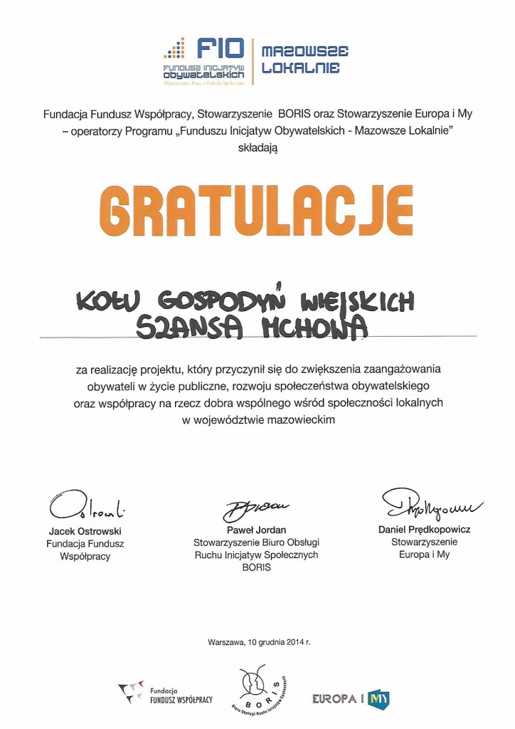 • Koło Gospodyń Wiejskich "Szansa Mchowa"