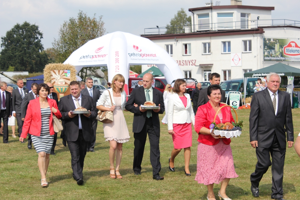 Tradycyjnie już uroczystość rozpoczęła się od zebrania delegacji z wieńcami dożynkowymi. W tym roku zaprezentowano łącznie 15 wieńców, z czego ponad połowa pochodziła z sołectw gminy Przasnysz. Korowodowi przewodzili wybrani rolnicy z terenu powiatu przasnyskiego, gminy Przasnysz i miasta Przasnysz – jako symboliczni starostowie dożynkowi. Tereny podprzasnyskie reprezentowali Jolanta i Grzegorz Walterscy z Cierpigórza.
