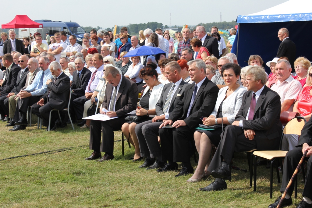 Punktualnie o godzinie 12.00 rozpoczęła się msza święta, której przewodniczył dziekan dekanatu przasnyskiego ks. Andrzej Maciejewski. Bezpośrednio po niej gospodarze dożynek: starosta Zenon Szczepankowski, wójt Grażyna Wróblewska oraz burmistrz Waldemar Trochimiuk rozdzielili chleb dożynkowy między zebranych gości. Wśród tych ostatnich nie zabrakło także polityków czy osób reprezentujących różne instytucje powiatowe i gminne. Do Sierakowa przyjechali m.in. senator Jan Maria Jackowski czy poseł Mirosław Koźlakiewicz. Byli obecni również radni mazowieccy Wiesława Krawczyk i Benedykt Pszczółkowski.