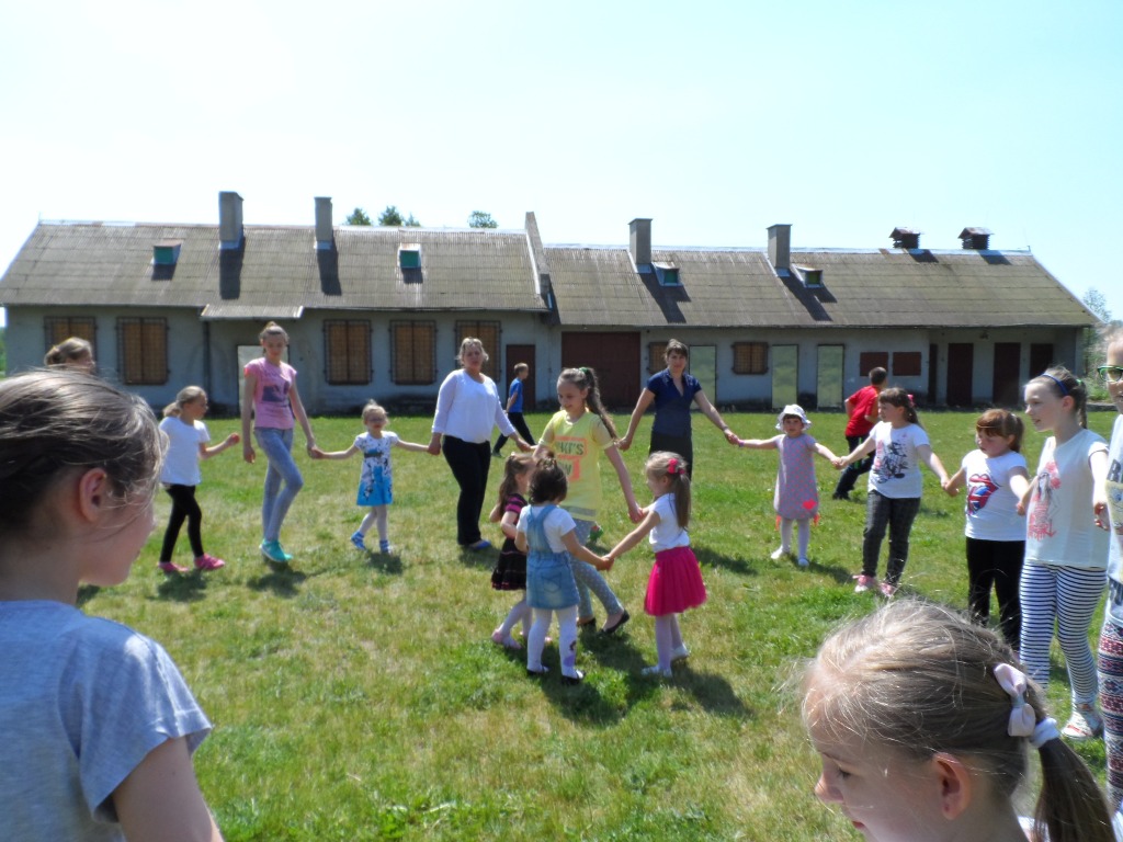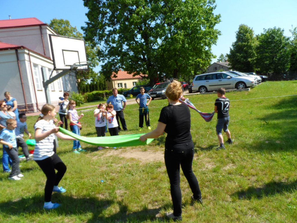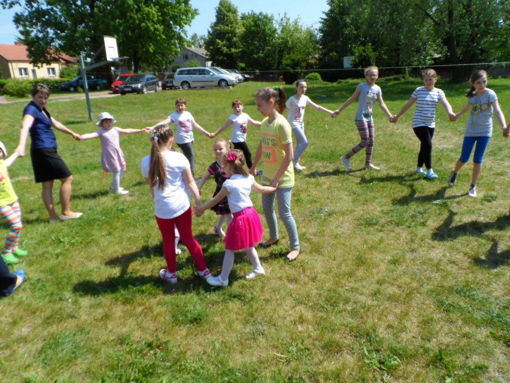 Po spektaklu uczniowie wraz z rodzicami i nauczycielami wzięli udział w przygotowanych konkursach i rozgrywkach sportowych. Na zmęczonych zabawa uczestników czekały kiełbaski z grilla i chłodne napoje. Spożywane w gronie rodziny i znajomych smakowały wyjątkowo dobrze.