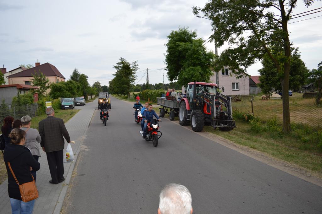 Co ciekawe, uczestnicy uroczystości objeżdżali pola specjalnymi bryczkami przygotowanymi właśnie na ten cel. Na przedzie korowodu jechały trzy jednoślady z krzyżem, a za nimi ciągniki z doczepionymi bryczkami i przyczepami. Orkiestra strażacka jechała z instrumentami na przyczepie i przy każdym kopcu czy figurze granicznej odgrywała pieśni religijne. Mimo że podróż odbywała się chwilami w tumanach kurzu, wszyscy byli zadowoleni i uśmiechnięci.