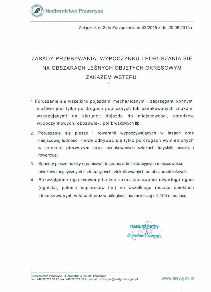Poniżej przedstawiamy pełną treść zarządzenia Nadleśnictwa, a także informację o zasadach poruszania się po lasach Nadleśnictwa Przasnysz.