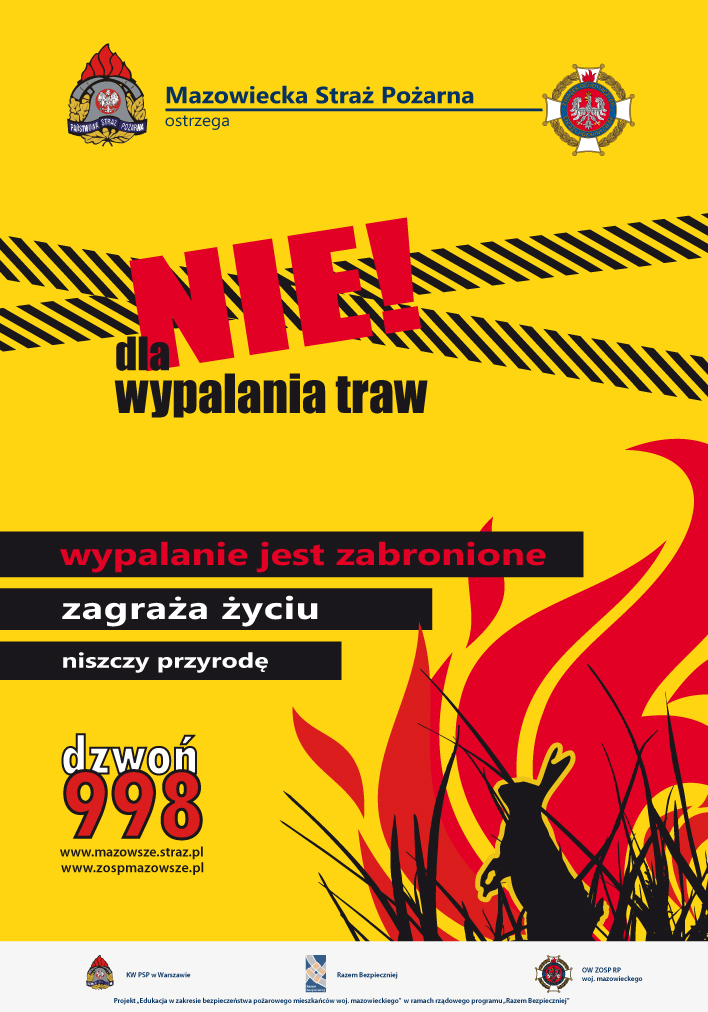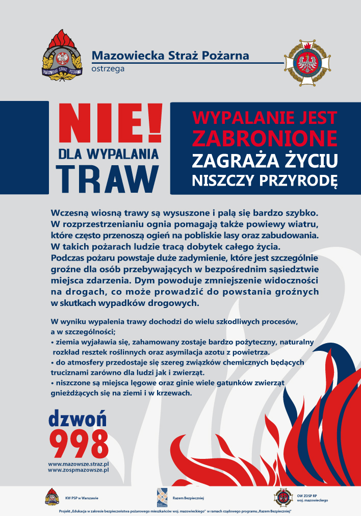 Komenda Wojewódzka Państwowej Straży Pożarnej na Mazowszu przypomina o zakazie wypalania traw na łąkach znajdujących się na terenie całego kraju.