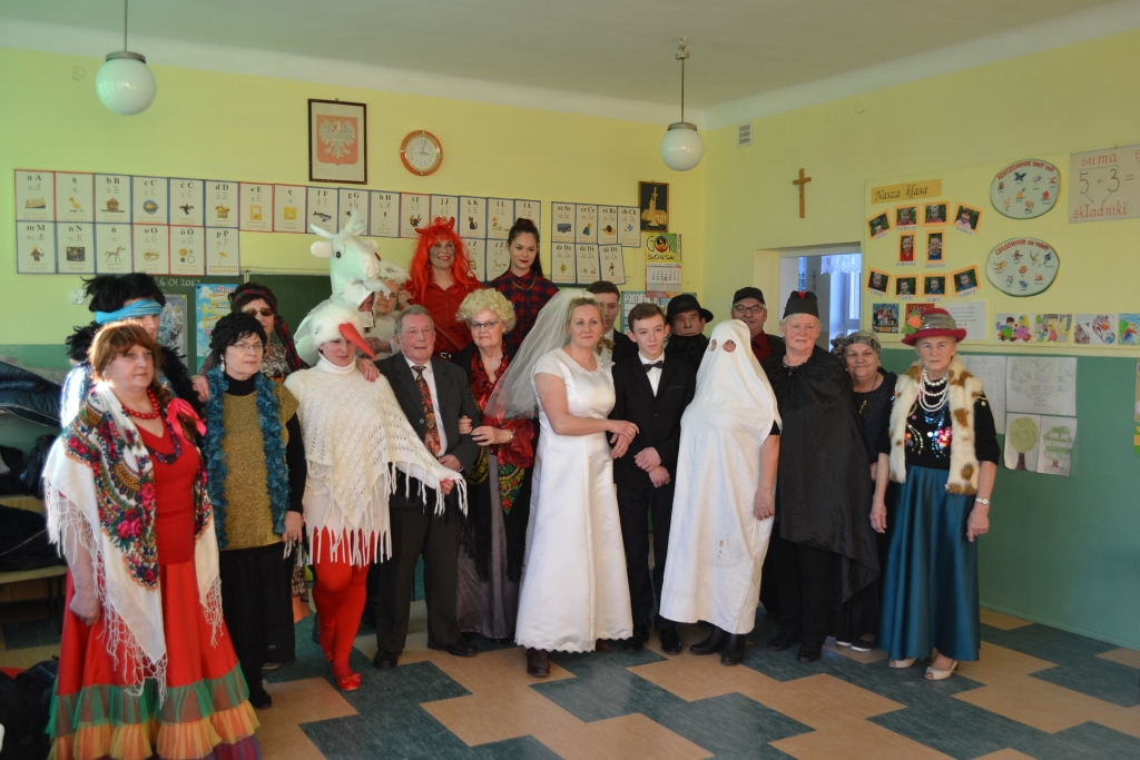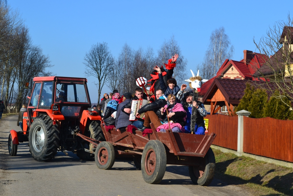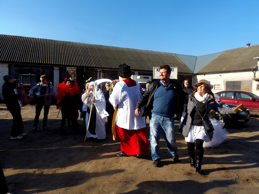 Cała zabawa rozpoczęła się od przejścia barwnego korowodu przebierańców przez wieś, a następnie odwiedzenie domów gospodarzy, którzy przyjmowali zapustników za życzenia i dobrą zabawę.