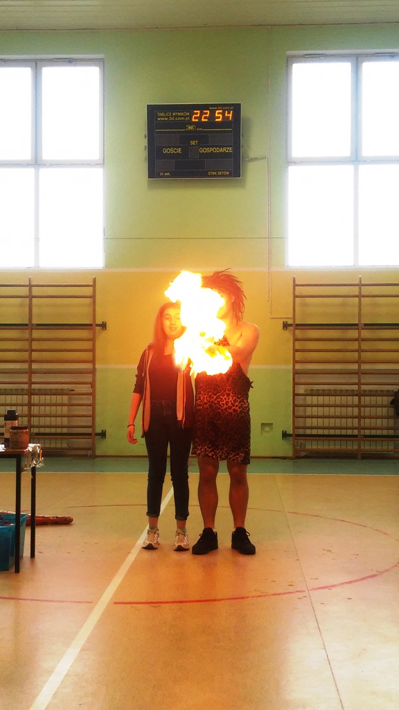 Zaproszeni goście przygotowali w sumie dwie lekcje – oddzielną dla uczniów szkoły podstawowej i dla gimnazjalistów. Oba spotkania obfitowały w pokazy niezwykłych doświadczeń chemicznych. Nie można jednak powiedzieć, że był to zwykły popis rodem z cyrkowych sztuczek. W czasie zajęć prowadzący m.in. omawiali budowę organizmu, prowadzili konkursy wiedzowe dla uczniów, a także przedstawili kolekcję niezwykłych rekwizytów. Uczniowie mogli więc obejrzeć m.in. kulę plazmową, transformator czy koło optyczne.