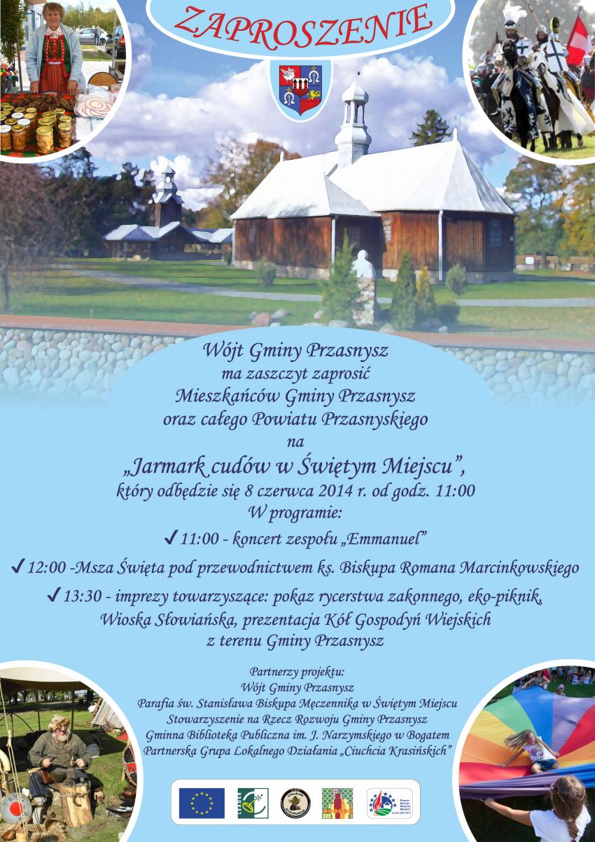 Wójt Gminy Przasnysz Grażyna Wróblewska zaprasza wszystkich mieszkańców gminy i powiatu przasnyskiego na Festyn Rodziny pod nazwą „Jarmark Cudów” w Świętym Miejscu, który odbędzie się w niedzielę, 8 czerwca, w trakcie odpustu parafialnego w parafii Święte Miejsce.