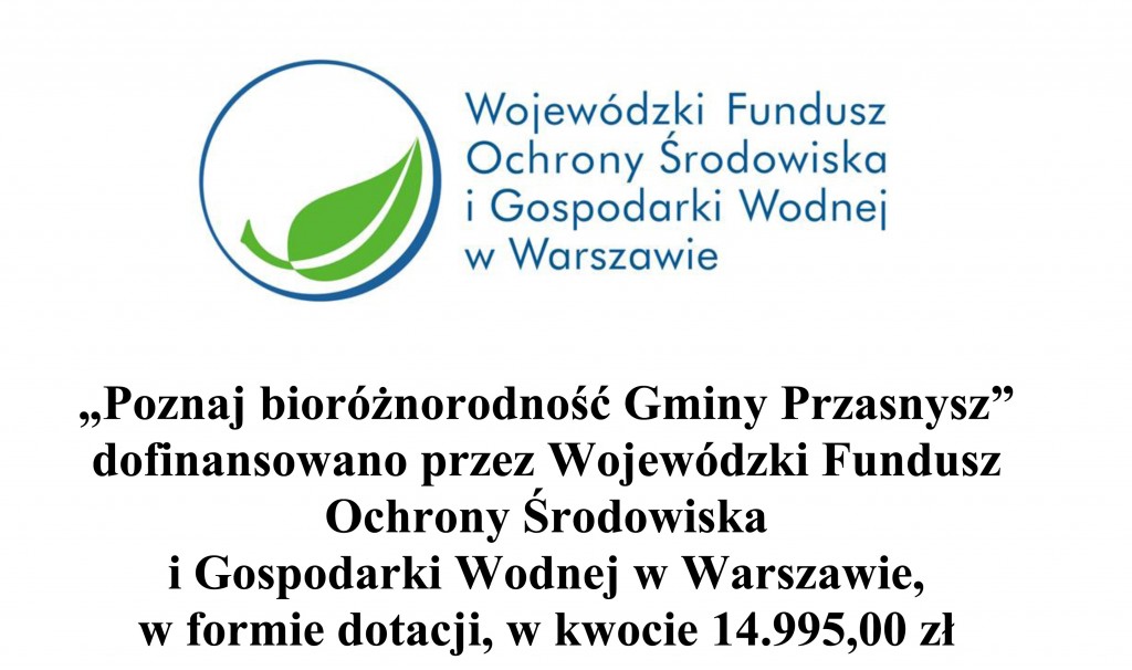 Konkurs pn. „Poznaj bioróżnorodność Gminy Przasnysz” został dofinansowany przez WFOŚiGW kwotą w wysokości 14 995,00 zł. Stanowiło to 90% całości środków przeznaczonych na realizację całego przedsięwzięcia.