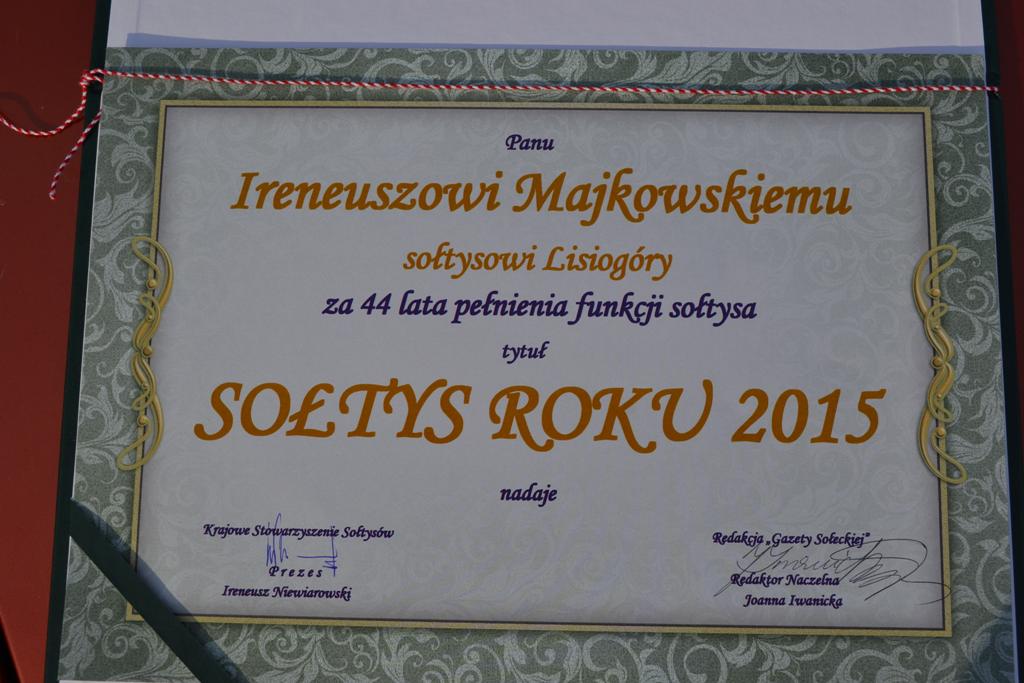 Reprezentujący Gminę Przasnysz sołtys Lisiogóry Ireneusz Majkowski został uznany sołtysem roku 2015 w corocznym konkursie organizowanym przez redakcję „Gazety Sołeckiej” i Krajowe Stowarzyszenie Sołtysów.
