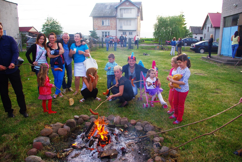 Później zebrani goście spotkali się przed świetlicą, by tu przy rozpalonym ognisku upiec sobie kiełbaski i wziąć udział we wspólnych zabawach rodzinnych. Dla najmłodszych znalazł się także słodki poczęstunek. Spotkanie to przeciągnęło się aż do późnego popołudnia, czemu sprzyjała pogoda. Wieczorem natomiast dla wszystkich chętnych odbyła się jeszcze ludowa zabawa, która zgromadziła zarówno młodzież, jak i osoby dorosłe.