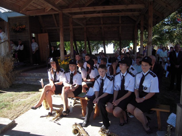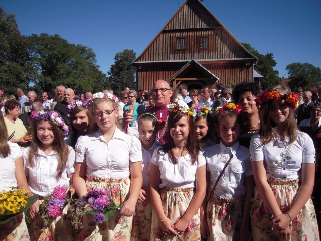Po uroczystym akcie przecięcia wstęgi zgromadzeni widzowie i zaproszeni goście udali się na dziedziniec kościoła parafialnego, na którym ustawiono dożynkowy ołtarz. Tu proboszcz parafii, ksiądz Marek Makowski, odprawił mszę dziękczynną za dobre zbiory rolników z terenu całego powiatu. Po zakończonej mszy tradycyjnie odbyło się także dzielenie chleba dożynkowego ze wszystkimi osobami, które zjawiły się tego dnia w Świętym Miejscu. W rolę gospodarzy wcielili się wójt Grażyna Wróblewska, burmistrz Przasnysza Waldemar Trochimiuk oraz starosta Zenon Szczepankowski. Samorządowcy podarowali małe bochenki chleba wybranym mieszkańcom z gminy Przasnysz i całego powiatu jako podziękowanie za ich wieloletnią pracę na roli.