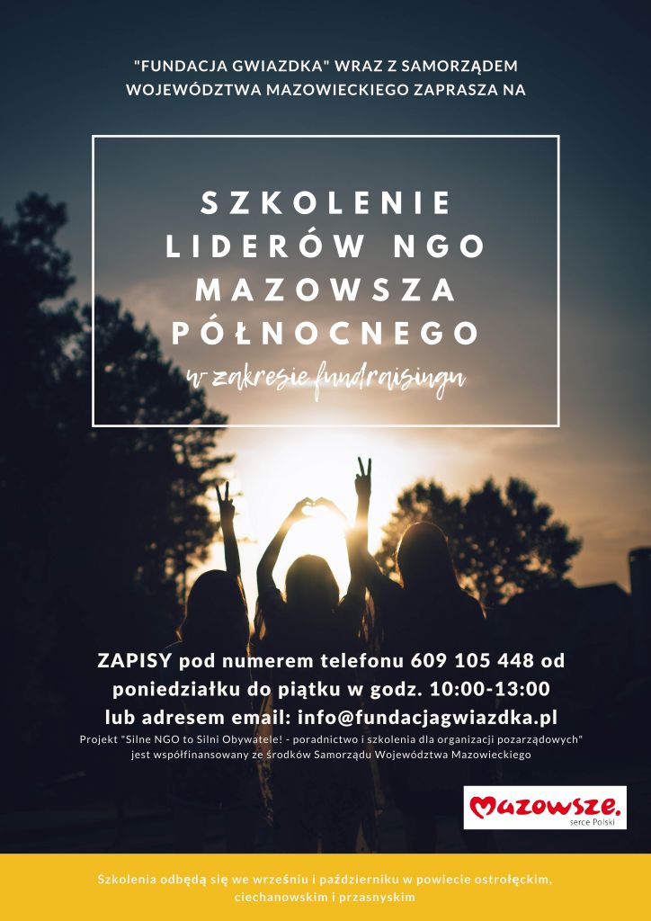 Organizacja pozarządowe z terenu gminy Przasnysz mogą wzmocnić swój potencjał przez wzięcie udziału w szkoleniu poświęconemu zdobywaniu środków na swoją działalność. Takie szkolenie odbędzie się 18 listopada w Zespole Szkół Powiatowych im. mjra Henryka Sucharskiego w Przasnyszu. Zapisy na szkolenia trwają do 13 listopada.