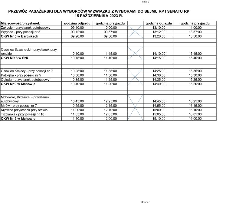 Zachęcamy do zapoznania się z rozkładem godzinowym każdej z trzech zaplanowanych linii. Komunikacja autobusowa w dniu wyborów jest nieodpłatna.