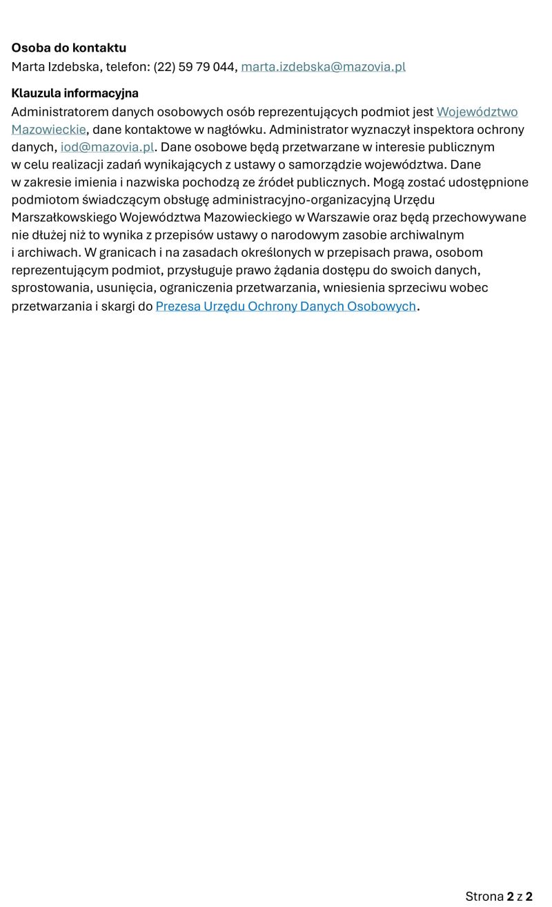 Poniżej list informujący o możliwościach uruchomionego portalu.