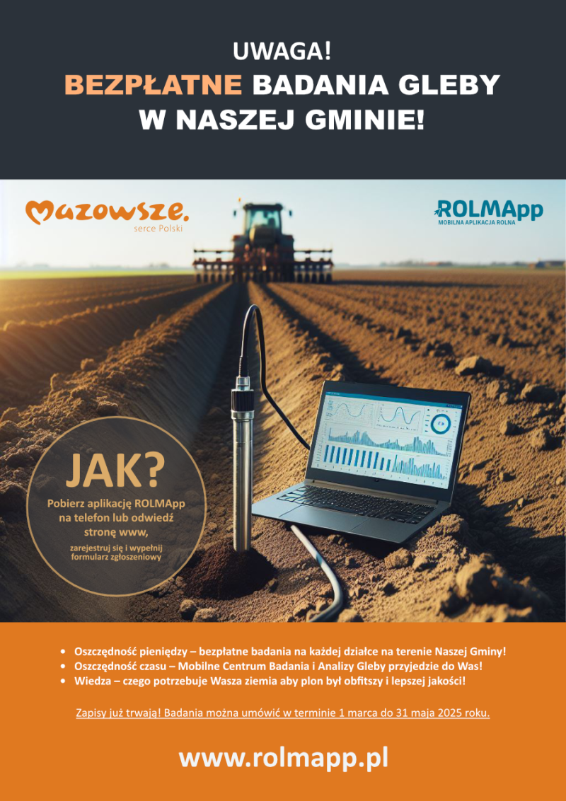Przypominamy o możliwości wykonania dla mieszkańców Mazowsza bezpłatnych kompleksowych badań gleby. Badania takie są prowadzone przez Mobilne Centrum Badania i Analizy Gleby przy Mazowieckim Biurze Geodezji i Urządzeń Rolnych w Ostrołęce.