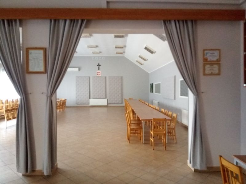 Zakres zadania pn. „Odnowa świetlicy wiejskiej w Lesznie” obejmował remont świetlicy, w tym: malowanie wnętrza świetlicy, montaż wertikali i rolet oraz wygłuszenie głównego pomieszczenia poprzez wykonanie elementów dekoracyjnych z materiału.