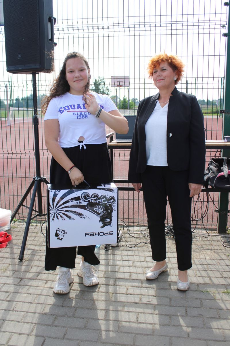 Nagrodą za I miejsce był rower; za II miejsce – hulajnoga, a za III miejsce – rolki. Wszystkim laureatom konkursów z poszczególnych szkół nagrody wręczyła Wójt Gminy Przasnysz Pani Grażyna Wróblewska.