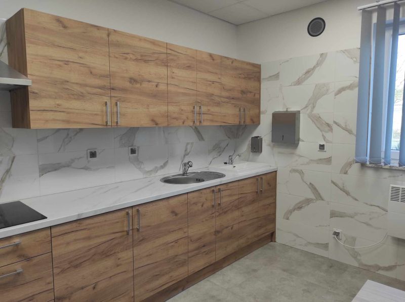 Remont świetlicy obejmował m.in. wymianę drzwi zewnętrznych, wymianę posadzki i warstw podłogowych, remont ścian wewnętrznych, montaż ścian działowych (roboty murarskie, tynkarskie i malarskie), wymianę wentylacji, roboty stolarskie w tym: montaż drzwi wewnętrznych, montaż verticali, moskitery, wieszaków, luster, roboty z zakresu instalacji wod.-kan. cw uż. wraz z montażem armatury, wymianę zbiornika na ścieki, wymianę przyłącza wody, remont/wymiana instalacji elektrycznej wraz z montażem opraw oświetleniowych LED, montaż grzejników elektrycznych.