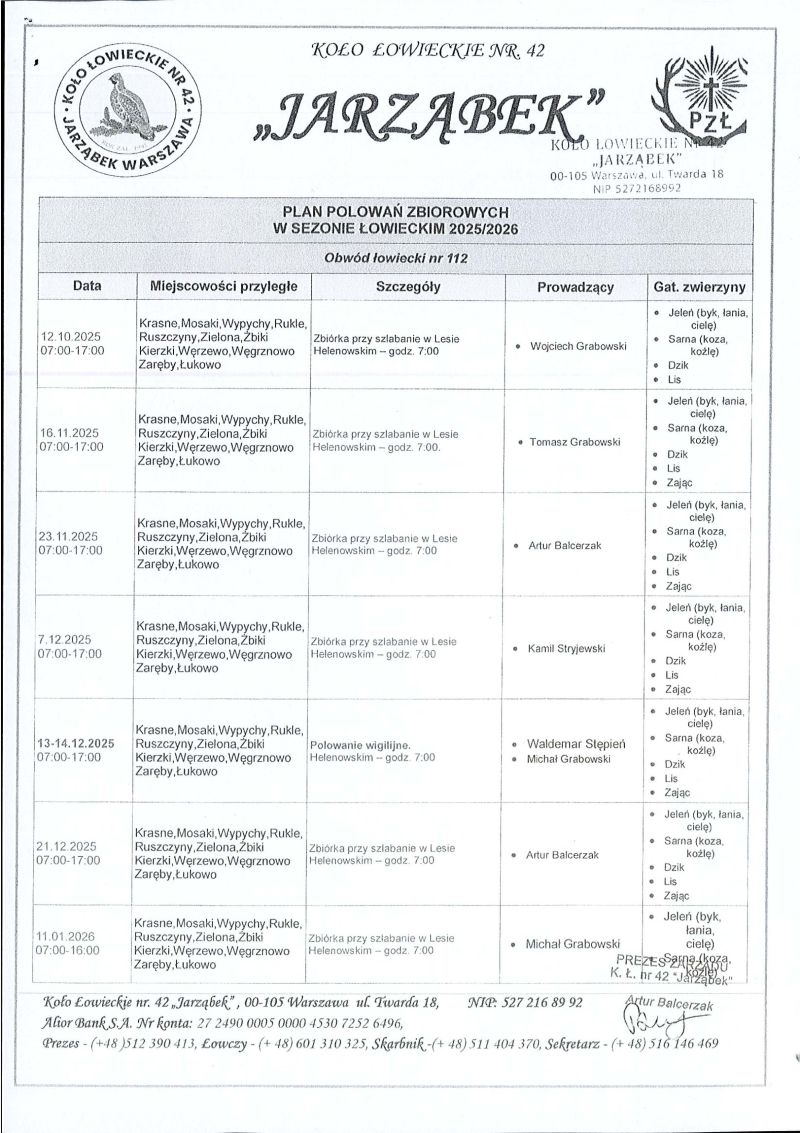 Obwieszenie - plan polowań Koła Łowieckiego "Jarząbek"